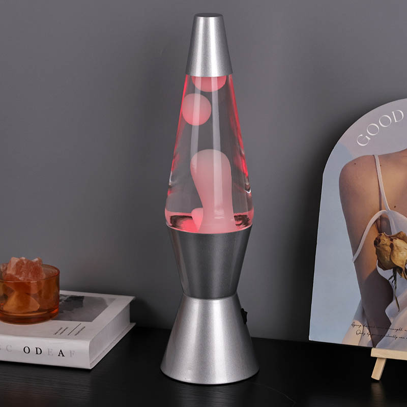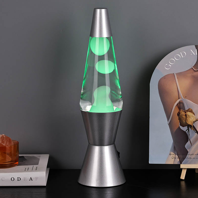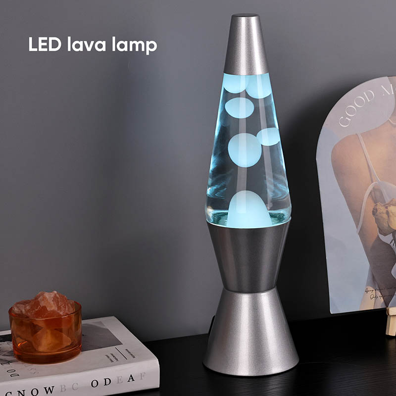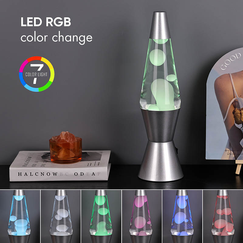 Lampa lavă LED RGB de 15 inchi are 7 culori schimbate în partea de jos. culoarea este albă cu lava.