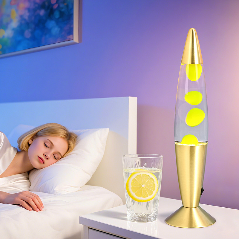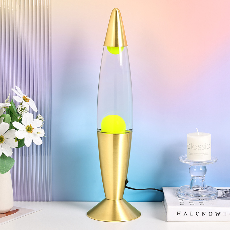 24VLampa de lavă portocalie de lux de 16 inchi are apă pură în interiorul sticlei transparente și ceară verde în interior. După ce este încălzită, ceara plutește neregulat în apă, ceea ce este foarte apreciat.