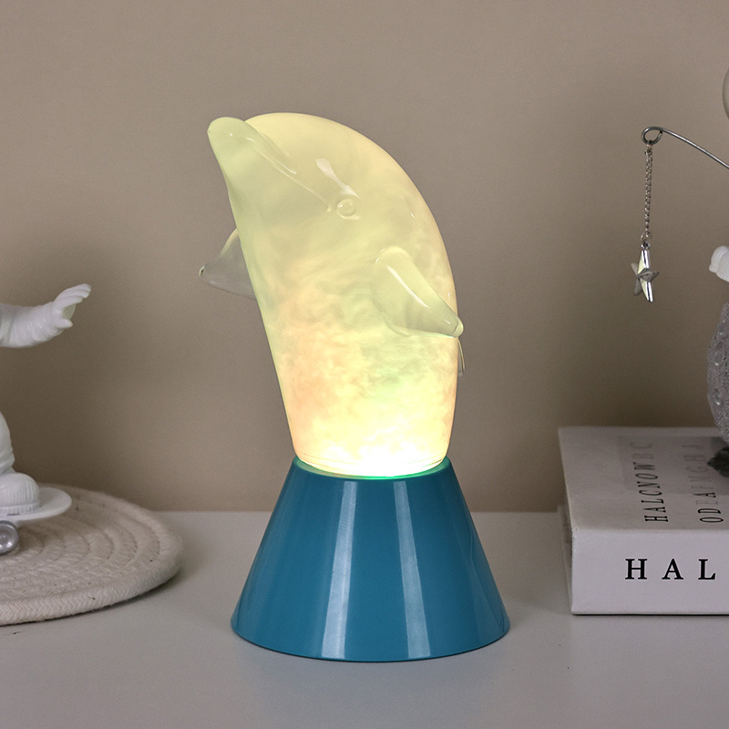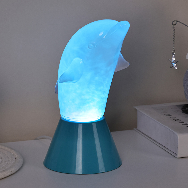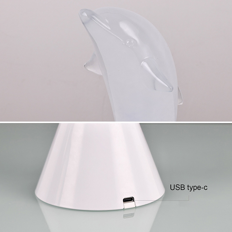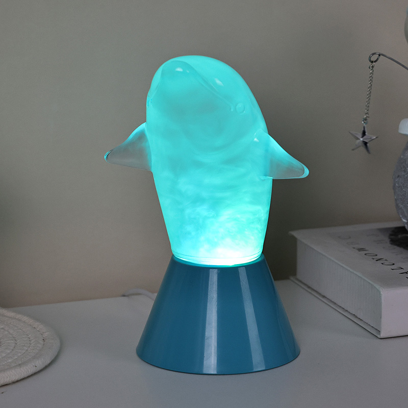 Dolphin Kid RGB Nigh Light este proiectat sub forma unui delfin drăguț, cu linii netede și detalii rafinate, restabilind perfect postura agilă a delfinilor. În interiorul cochiliei transparente a delfinului, lichidul cețos care curge seamănă cu valurile din ocean, legănându-se ușor, creând o atmosferă pașnică și misterioasă. De fiecare dată când privești această lampă, ai impresia că te afli în adâncurile oceanului, experimentând farmecul infinit al naturii
