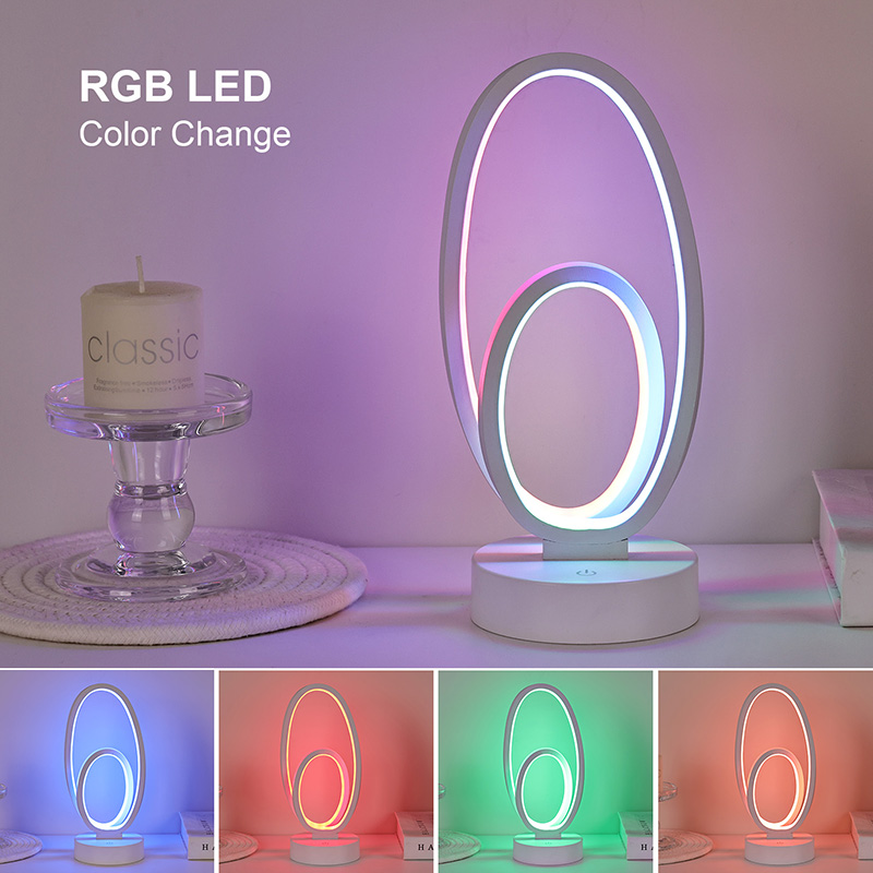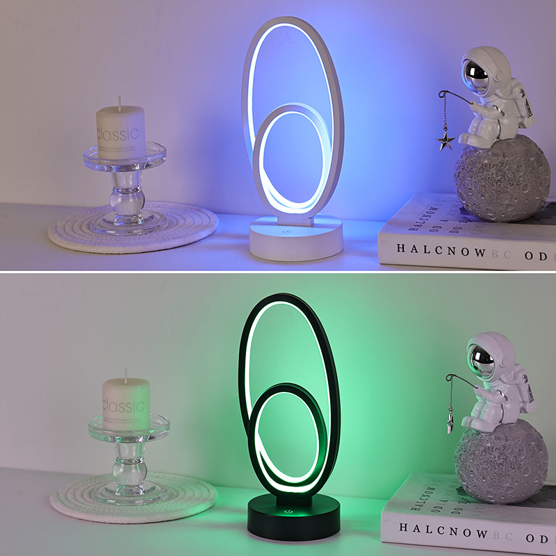 Lampa de birou RGB cu umbră circulară dublă este un accent artistic pentru spațiile casnice, oferind sursă de alimentare DC sigură de joasă tensiune pentru performanțe stabile și eficiente din punct de vedere energetic, asigurând o utilizare în siguranță. Potrivit pentru diverse scenarii, cum ar fi camere de zi, camere pentru copii, zone de studiu și dormitoare