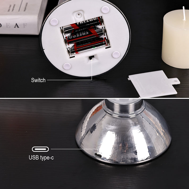 baterie 3AAALumânarea decorativă în stil european este realizată din metal și plastic, atât partea superioară, cât și cea inferioară din metal. Partea superioară poate ține lumânări utilizate în mod obișnuit pentru iluminat, iar partea de mijloc este proiectată într-un stil european în formă de tărtăcuță.