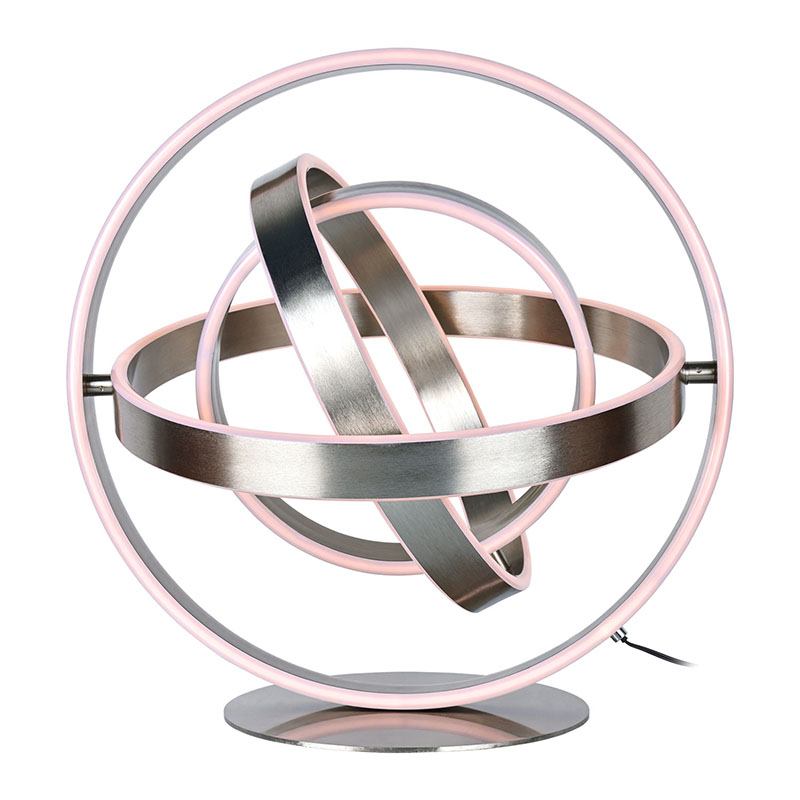 Inima lămpii decorative de masă LED cu inele multiple este afișajul său captivant. Inelele sunt iluminate de lumini LED strălucitoare care emit o strălucire caldă și îmbietoare. Lumina difuzează prin inele, creând un efect vizual fascinant care adaugă un strat suplimentar de feerie spațiului tău de locuit. Indiferent dacă citiți o carte, lucrați la laptop sau pur și simplu vă bucurați de o seară confortabilă, această lampă oferă atmosfera perfectă.