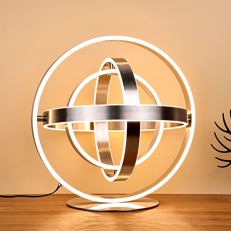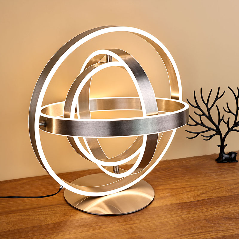 Fabricată din materiale de aliaj de înaltă calitate, Lampa de masă decorativă cu LED-uri cu inele multiple este construită pentru a rezista. Baza robustă asigură stabilitate, permițându-vă să o plasați pe orice suprafață fără griji. Construcția durabilă înseamnă că această lampă poate rezista utilizării de zi cu zi, făcând-o un plus de încredere și de lungă durată pentru decorul dumneavoastră.