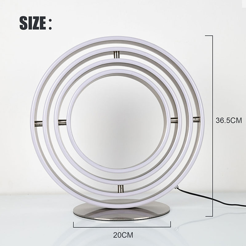 Lampa de masă decorativă LED cu inele multiple este o dovadă a designului modern și a funcționalității practice. Cu afișajul său captivant și construcția durabilă, este completarea perfectă pentru orice casă. Actualizați-vă spațiul de locuit astăzi și experimentați frumusețea și minunea pe care le aduce această lampă.
