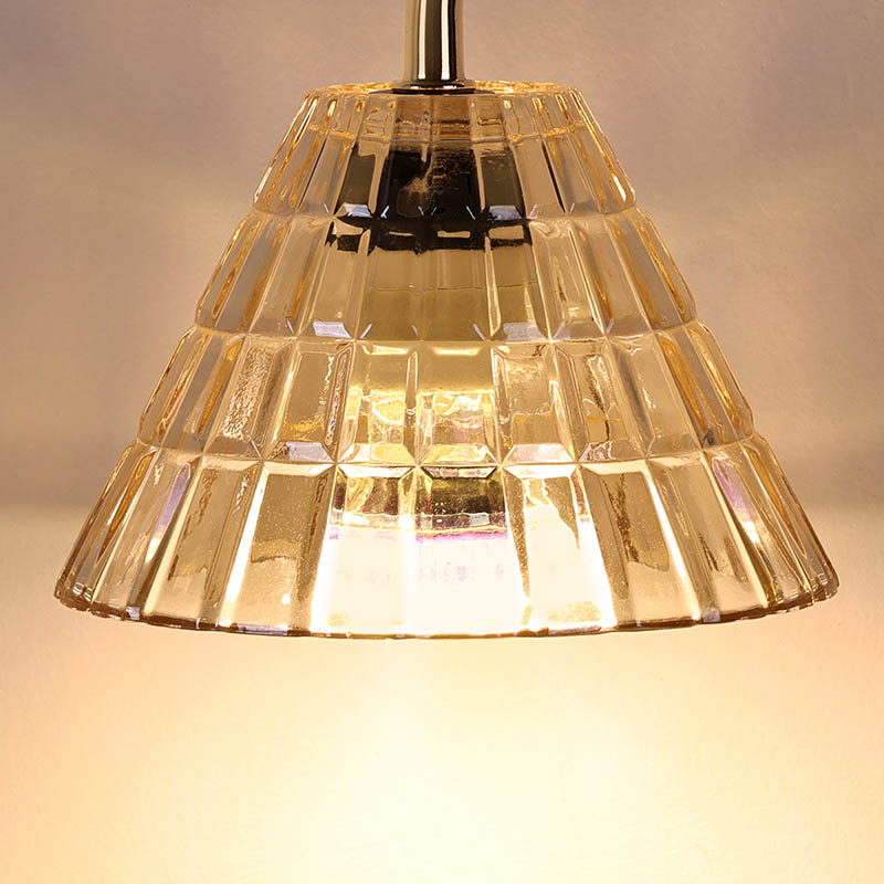 Abajurul este din sticlă transparentă (acril), iar lumina caldă colorată este foarte potrivită pentru lectură. Cel mai mare punct de vânzare al lămpii de masă cu abajur de sticlă cu înălțime reglată, pe lângă design, este stâlpul de lumină reglabil pe înălțime cu buton rotativ, iar domeniul de iluminare poate fi și ajustat în funcție de înălțime.