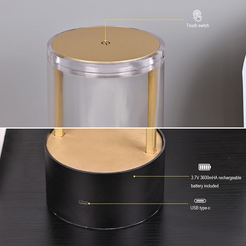 Partea superioară a lămpii de masă în stil Lantern este un comutator de lumină sensibil la atingere, cu un cap de încărcare reîncărcabil de tip C în partea de jos. Partea superioară este compusă dintr-un capac acrilic transparent, iar partea inferioară este o bază metalică. Structura circulară generală permite iluminarea mobilă