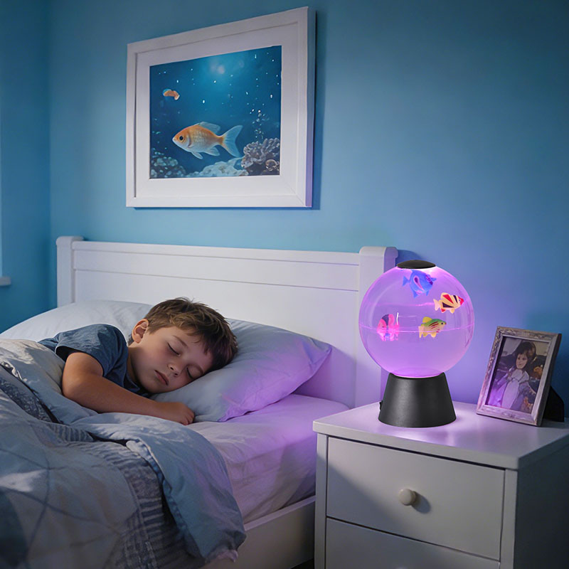 Descrierea produsului: Lampă LED cu glob de pește animat – O experiență magică în miniacvariu
