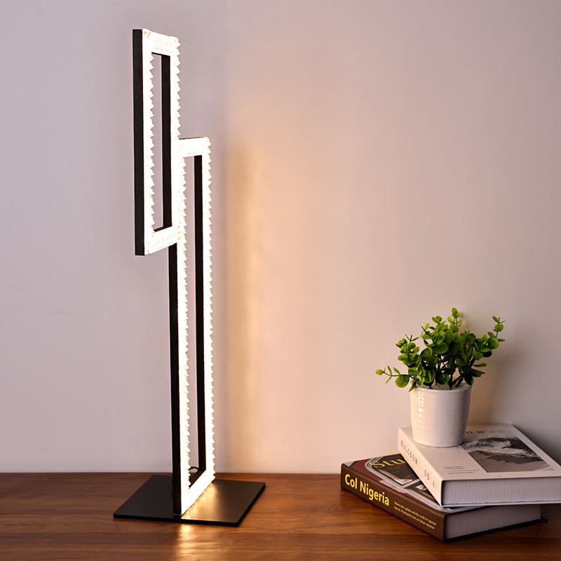 Lampa de birou cu LED cu abajur din cristal pătrat pentru decorarea casei este simplă și luxoasă, cu o formă curbă neregulată. Lampa de birou cu led pentru corpul decorului este compusa dintr-o lumina semi LED si un suport semimetalic. Lampa de birou cu led pentru decorul casei este foarte potrivită pentru a fi plasată pe blatul sau noptiera unui centru comercial sau hotel, deoarece designul este foarte luxos și foarte potrivit pentru decorare