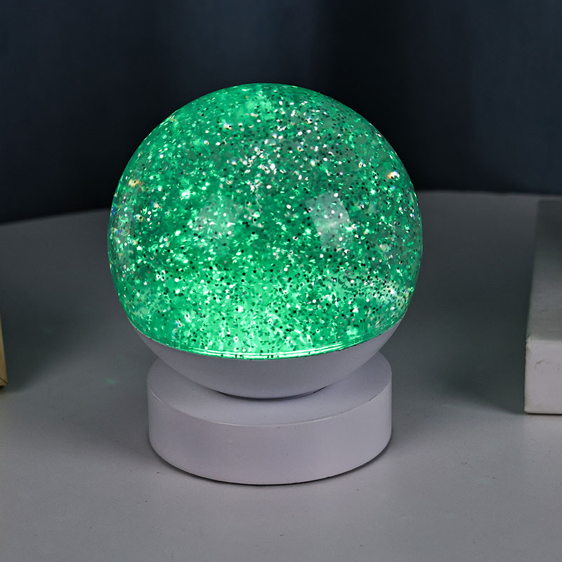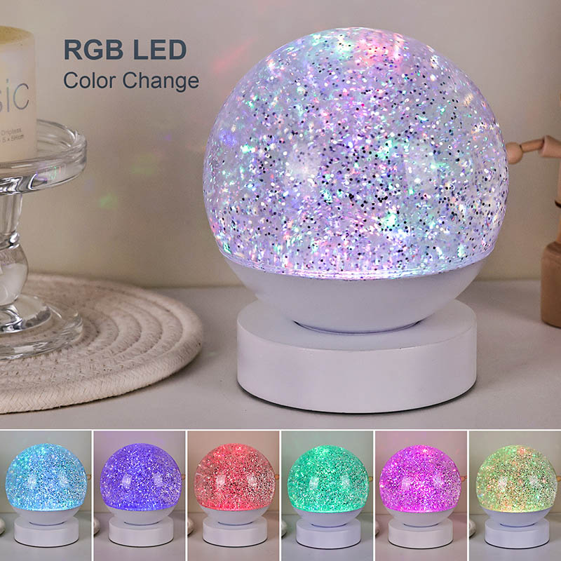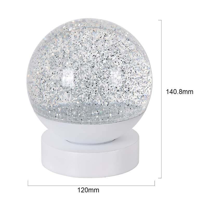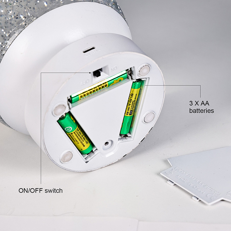 Lampa LED RGB Glitter Decor este realizată din material acrilic de înaltă calitate, având o sferă translucidă cu transmisie excelentă a luminii. Baza este realizată din plastic ABS ecologic, asigurând stabilitate, durabilitate și siguranță fără substanțe toxice. Funcționează cu trei baterii AAA încorporate (baterii vândute separat), eliminând necesitatea unei prize de curent și oferind o utilizare convenabilă. Perfect pentru așezare lângă pat, birou sau într-un colț de jucării pentru copii. Cu un simplu comutator tactil, lumina poate fi aprinsă sau stinsă cu ușurință, făcând-o ușor de utilizat chiar și pentru copii să opereze independent.