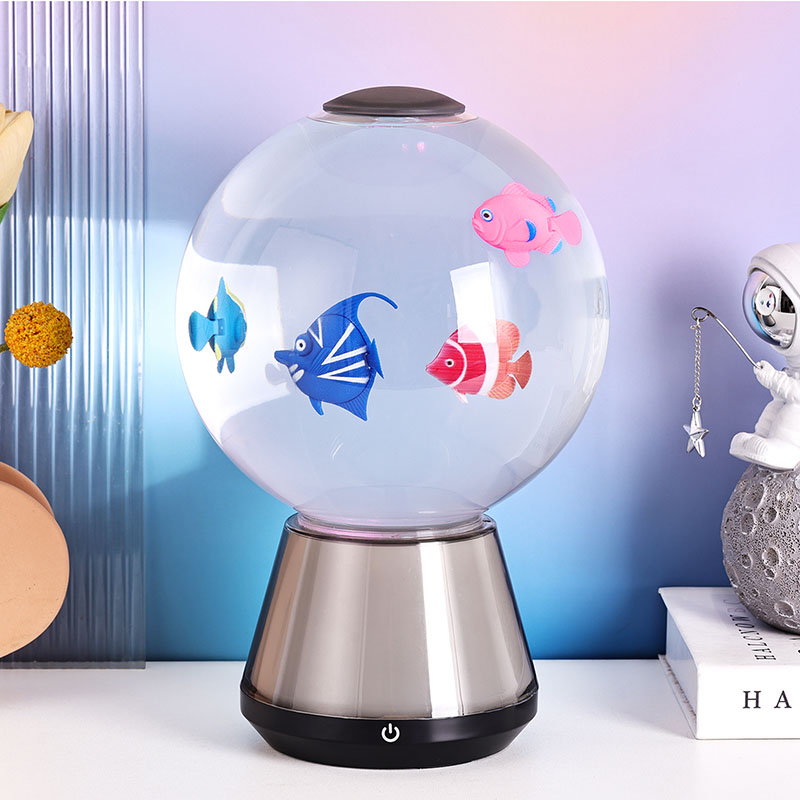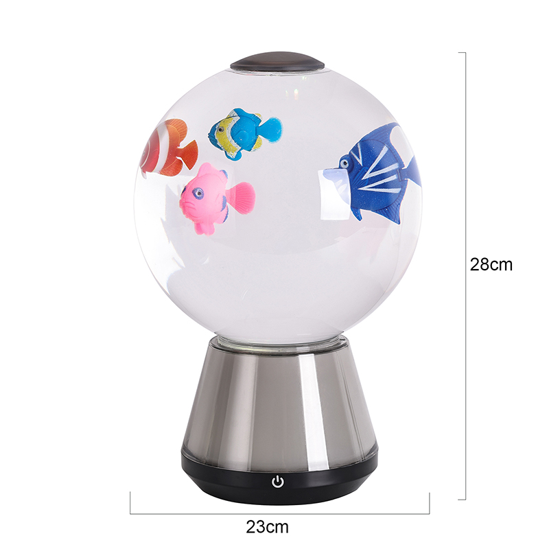Piesa centrală este un rezervor cilindric transparent umplut cu un lichid blând, cu mișcare lentă, care sporește iluzia mișcării subacvatice. În interior, figurile de rechini în miniatură cu design complex - realizate cu contururi realiste și detalii subtile - se rotesc ușor alături de elemente moi, curgătoare în formă de meduză, iluminate de LED-uri interne. Mișcarea combinată creează un ritm vizual dinamic, dar liniștitor, evocând măreția liniștită a vieții oceanice. Indiferent dacă vă relaxați după muncă, meditați sau ajutați un copil să adoarmă, această lampă oferă o experiență senzorială liniștită care reduce stresul și stârnește uimire.