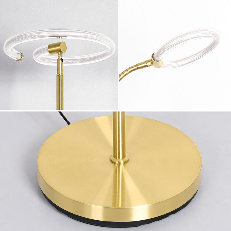 Lampa de podea cu LED Gold de lux pentru sufragerie este echipată cu tehnologie avansată de iluminare cu tub din silicon la 360 de grade, care emite lumină moale și uniformă, luminând eficient întregul spațiu. Tuburile din silicon au o bună flexibilitate și durabilitate și pot rezista la diferite condiții de mediu pentru a asigura stabilitatea și siguranța