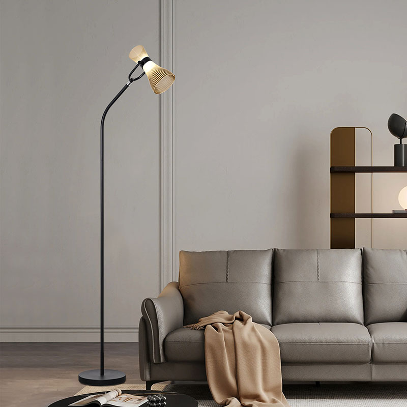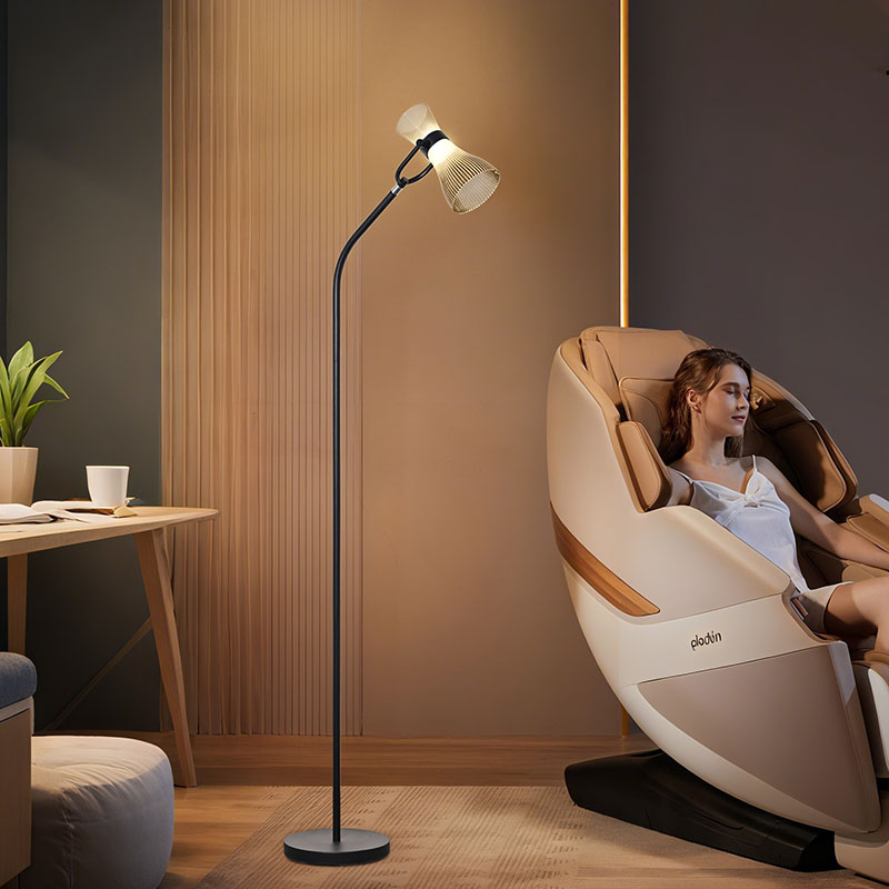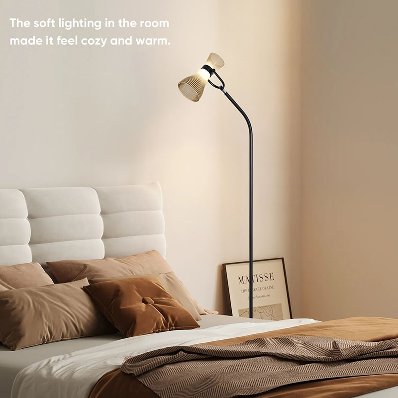 linii netede și naturale, prezentând o atmosferă nobilă și elegantă. Abajurul din sticlă nu numai că oferă lămpii o textură transparentă și pură, dar și difuzează eficient lumina, făcând lumina mai moale și mai uniformă. Indiferent dacă este plasată în sufragerie, dormitor sau birou, lampadarul LED modern cu abajur din sticlă poate fi perfect