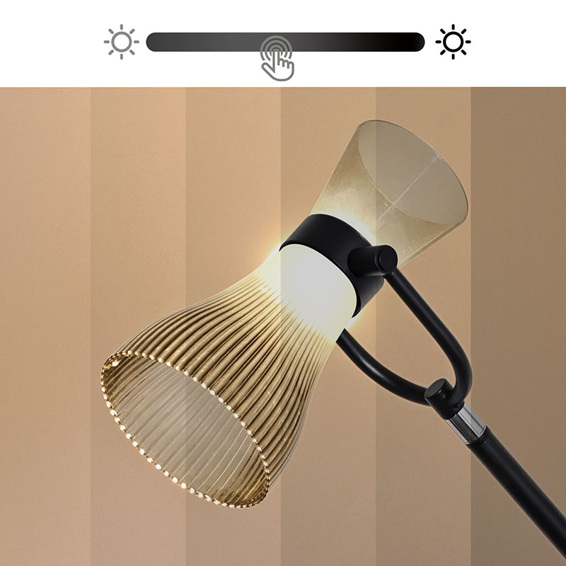 Lampa de podea led moderna cu abajur din sticla este echipata cu surse de lumina LED avansate care emit lumina moale si stralucitoare, protejandu-va eficient ochii si reducand oboseala si disconfortul cauzat de utilizarea prelungita a ochilor.