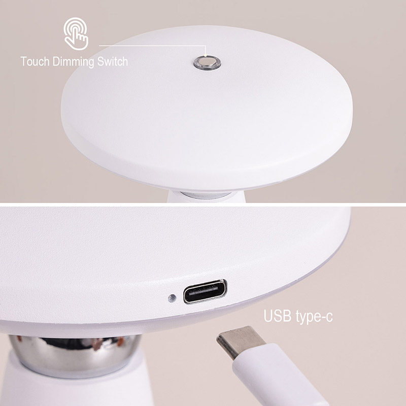 Atingeți comutatorul de atenuareLampa de birou cu LED ciupercă cu baterie reîncărcabilă cu liniile sale simple și netede și forma ergonomică, designul în formă de ciupercă și coada acului și lampa de birou LED cu lumină caldă din metal, nu este doar un instrument de iluminat practic,