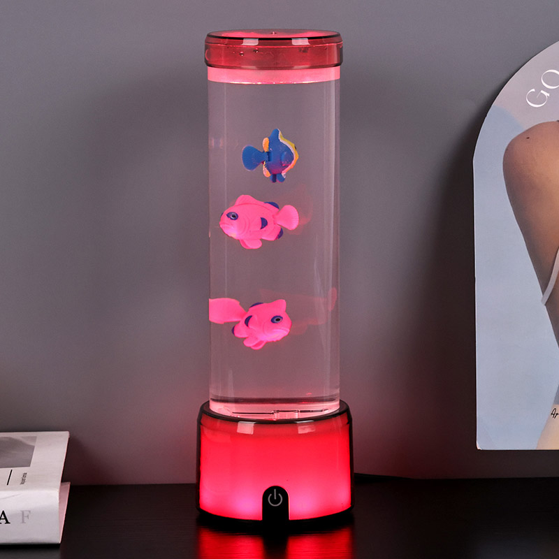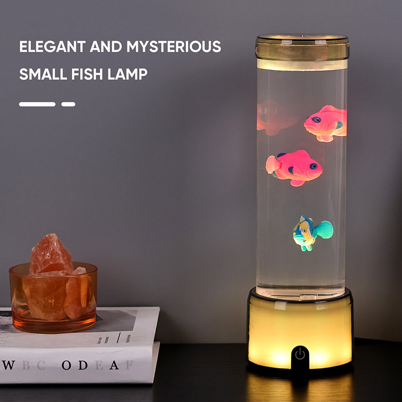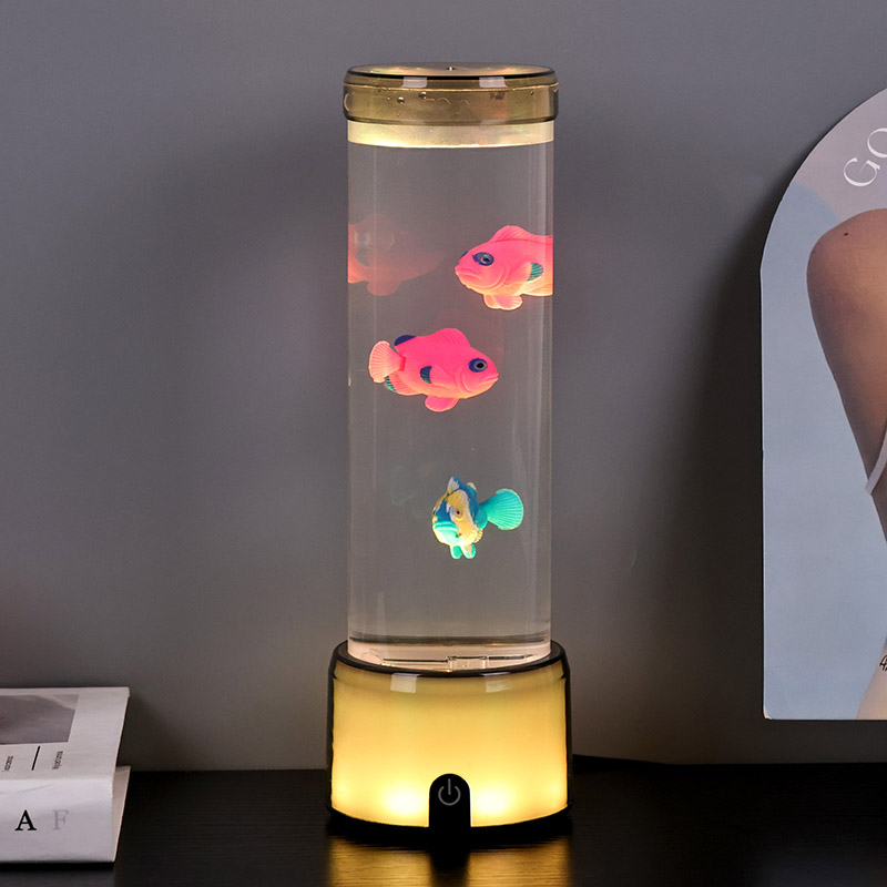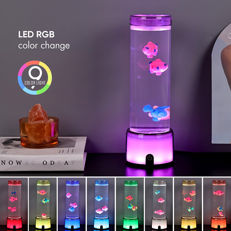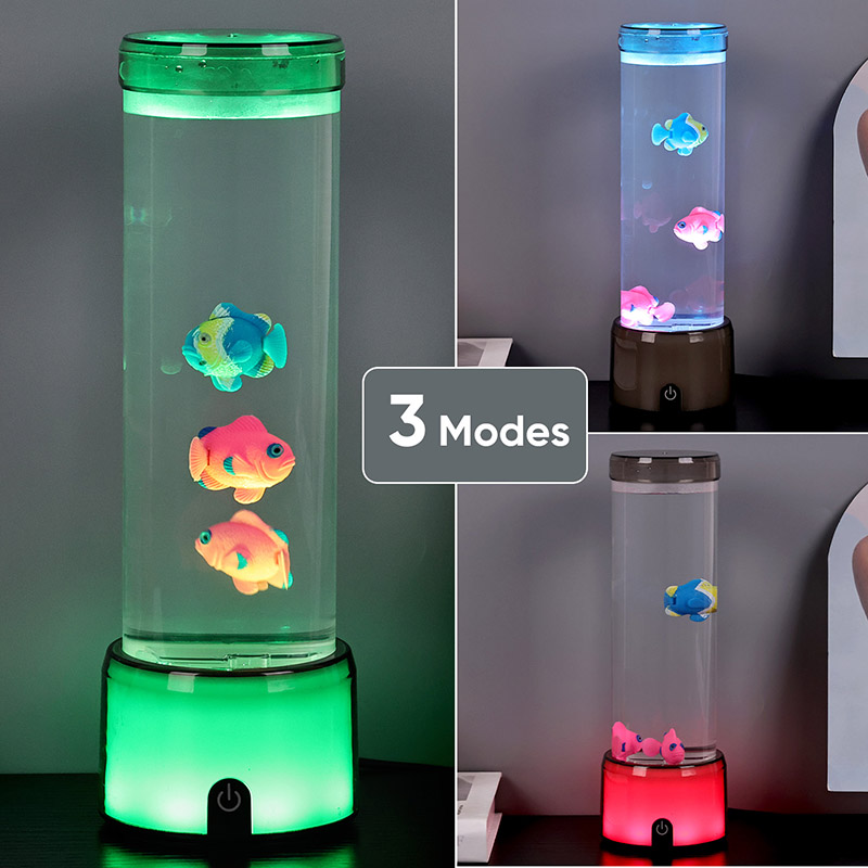 Baza lămpii cu pește este echipată cu o bază transparentă care schimbă culoarea RGB, care poate emite mai multe culori de lumină, făcând ca întregul corp al lămpii să prezinte un efect colorat. Culoare după pornirea comutatorului