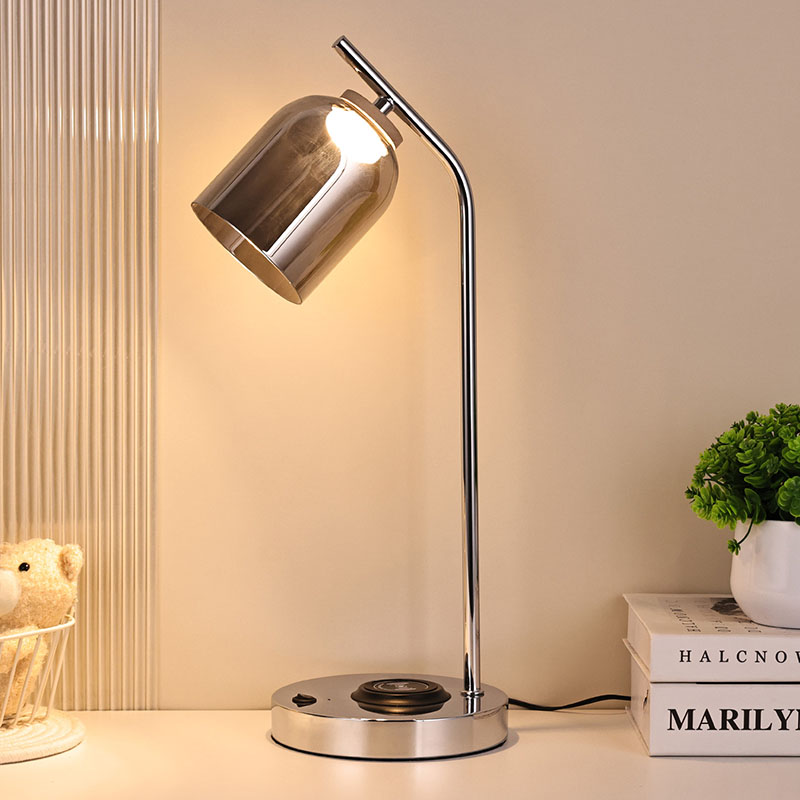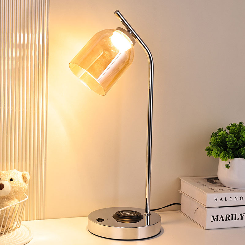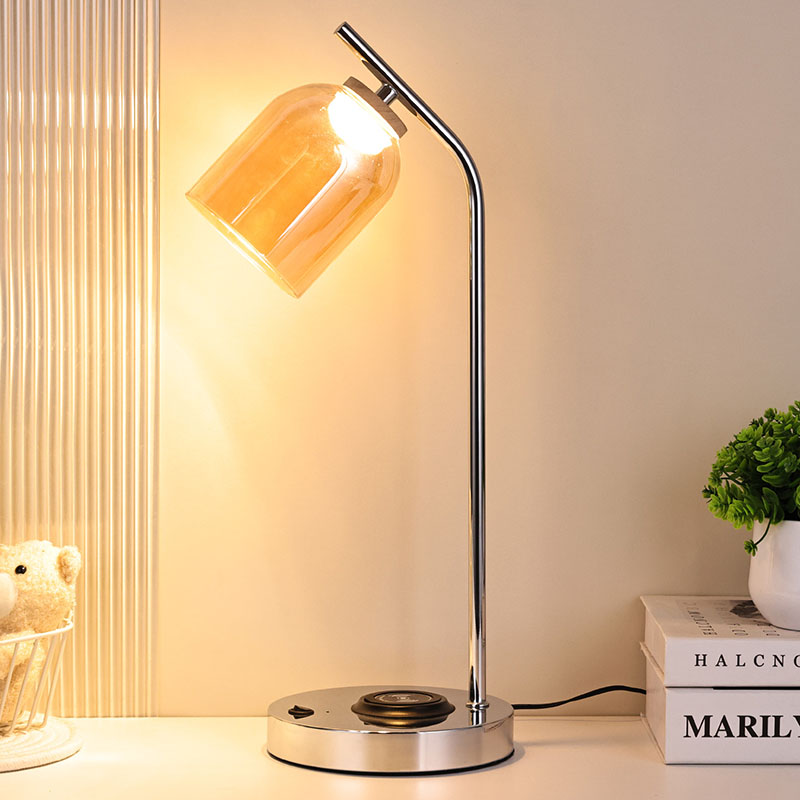 Lampă de birou led QI cu abajur din sticlă cu bază și corp din metal