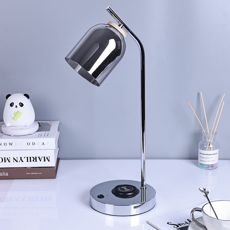 Lampa de birou led QI cu abajur din sticlă are certificat QI wireless. Încărcător de telefon fără fir 5V1A pe bază