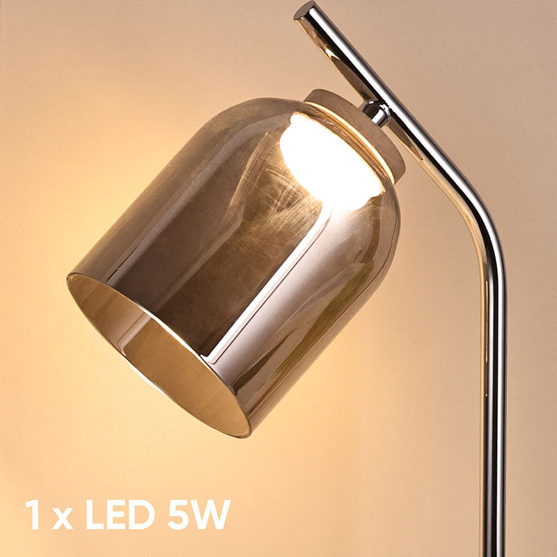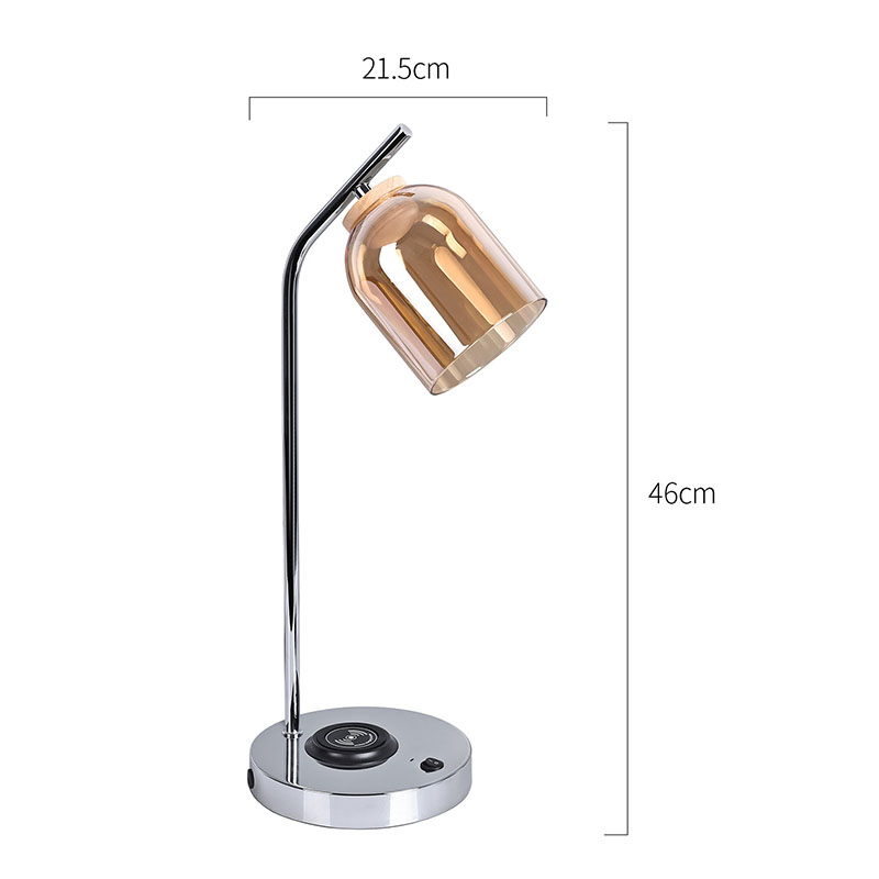 Baza cromată, abajur din sticlă fumurie (chihlimbar).Design inovator, material din sticlă, aspect high-end și elegant, stil de design al lămpii de birou extrem de ornamentale