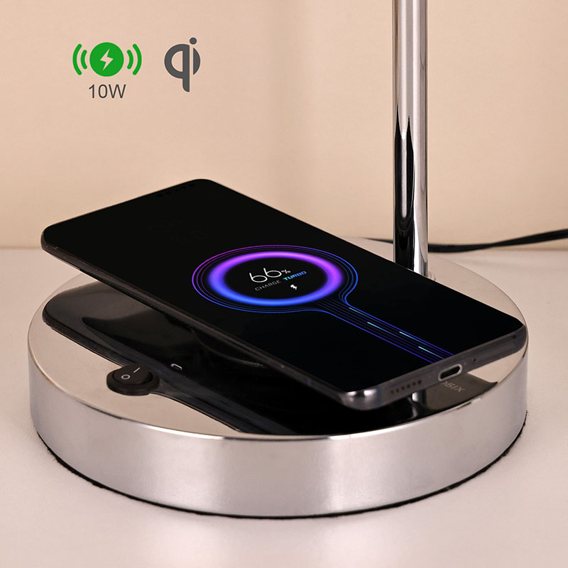 Pentru confortul dumneavoastră, lampa de birou QI led cu abajur din sticlă este echipată și cu o bază metalică de încărcare a telefonului mobil fără fir. Pur și simplu așezați ușor telefonul cu încărcare wireless activată pe bază pentru o încărcare rapidă, fără a fi nevoie de operațiuni obositoare de conectare. Tehnologia de încărcare fără fir nu numai că îmbunătățește confortul utilizării, dar evită și problema firelor dezordonate, făcând desktopul mai ordonat și mai frumos. În plus, baza metalică are performanțe bune de disipare a căldurii, asigurând siguranța și fiabilitatea procesului de încărcare