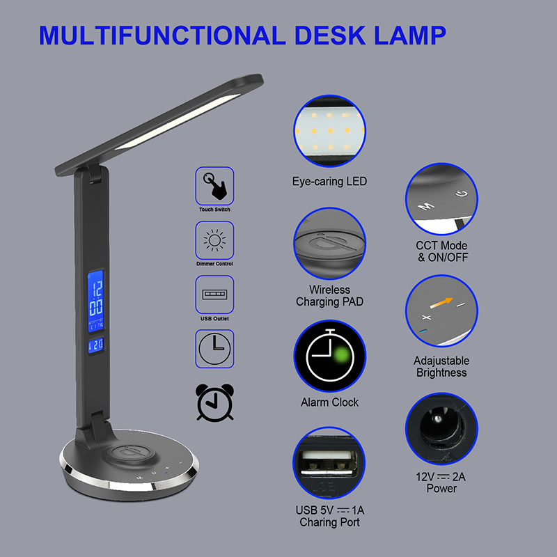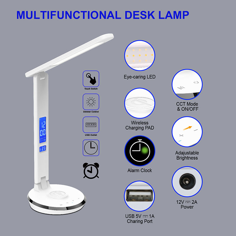 Lampa de birou LED pentru îngrijire pentru ochi cu încărcător wireless