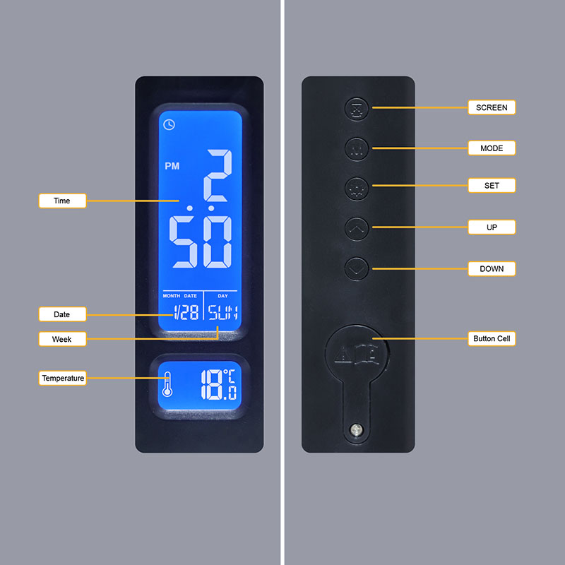 Dincolo de capacitățile sale impresionante de iluminare, această lampă de birou LED este echipată cu un ecran LED care afișează temperatura curentă și un ceas de alarmă. Spune -i la revedere de a -i face pe dispozitive separate; Cu această lampă, aveți toate informațiile esențiale dintr -o privire. Perfect pentru a urmări timpul și pentru a se adapta la schimbările de temperatură a camerei.