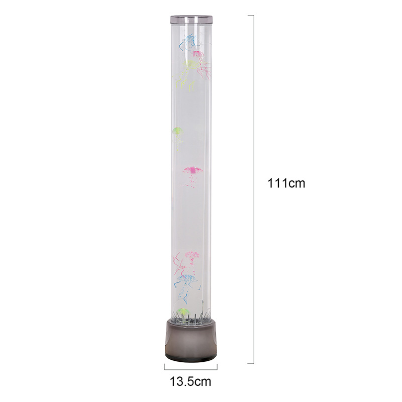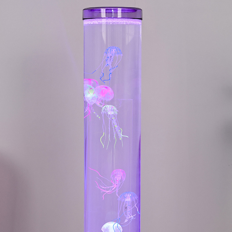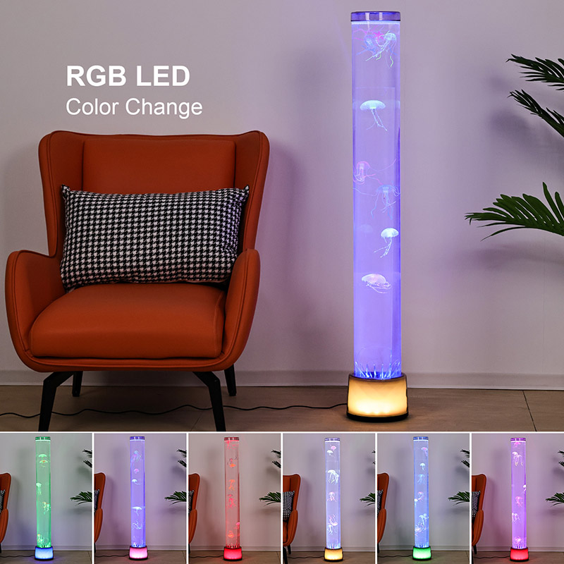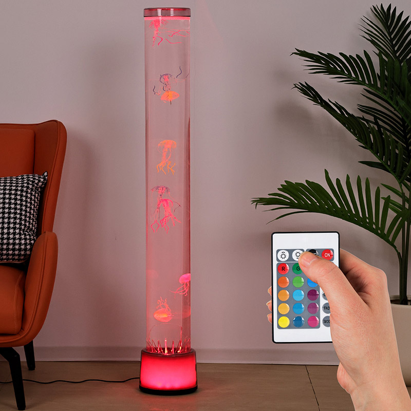 39,5*39,5*113CMLampa de podea RGB Jellyfish este o piesă creativă de decor pentru casă care îmbină tehnologia modernă cu estetica naturală. Cu efectele sale de lumini si umbre de vis si designul real al meduzei, adauga o ambianta oceanica misterioasa si linistita spatiilor interioare. Întregul design este realizat din acril de înaltă transparență, având o formă zveltă și elegantă care seamănă cu o lume subacvatică în miniatură, cufundându-vă ca și cum ați fi adânc în adâncul mării.