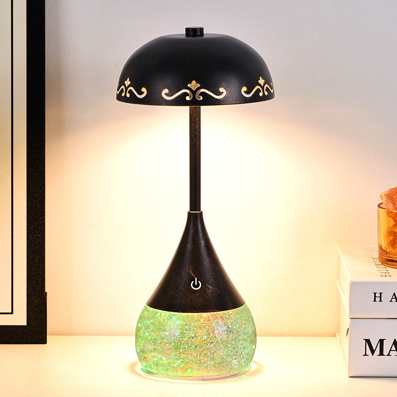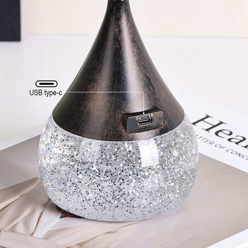 Lampa de birou cu LED cu sticlă cu sclipici RGB cu capac curbat