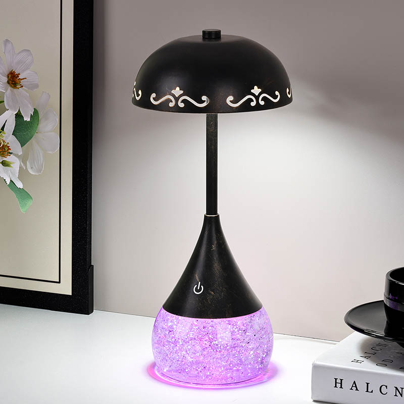 Poziționați lampa de birou LED cu sticlă cu sclipici RGB cu capac curbat ca o soluție de iluminat inovatoare premium, care combină funcționalitatea cu fler artistic. Subliniați caracteristicile sale unice, cum ar fi baza RGB dinamică și modurile de iluminare reglabile, pentru a o diferenția de concurenți.