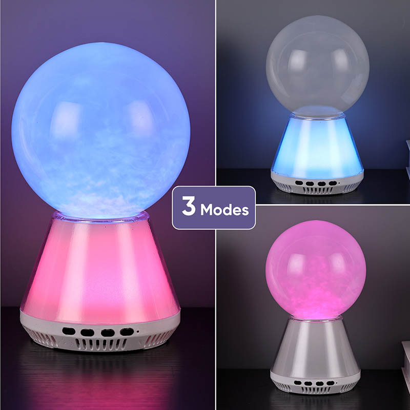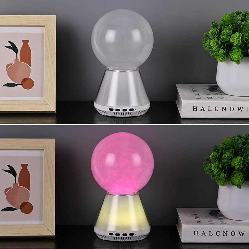 Principalul punct culminant al lămpii cu sclipici LED RGB cu control bluetooth este designul său unic cu bile de sticlă. Interiorul sferei de sticlă este umplut cu un lichid misterios. Când lampa este aprinsă, lichidul va curge încet în interiorul sferei, formând un efect de nor de vis. Acești nori și ceață par să cadă din cer,