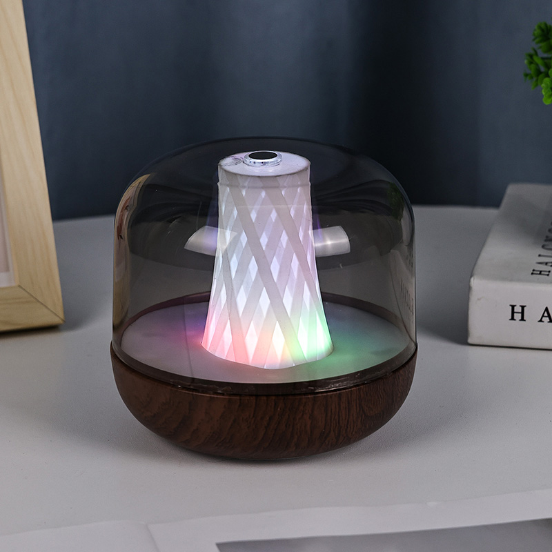 Pe măsură ce lumina dansează în interiorul turnului, capacul transparent din plastic difuzează ușor strălucirea, creând o ambianță cețoasă și eterică. Într-o cameră întunecată, întreaga structură apare ca un „Turn al luminii” plutitor – radiind liniște și mister, invitând la contemplare liniștită.