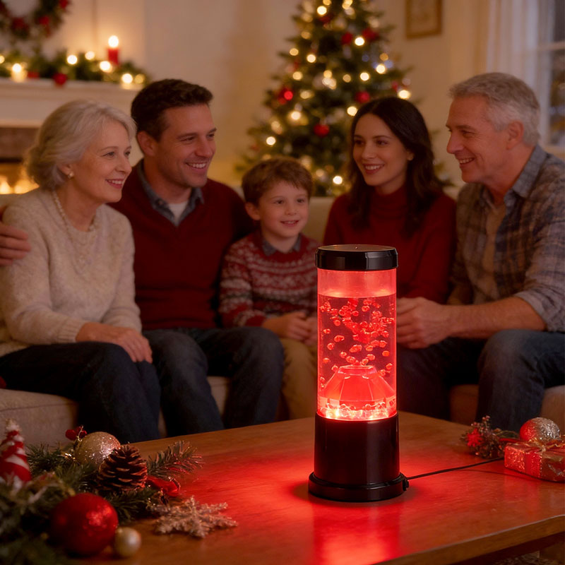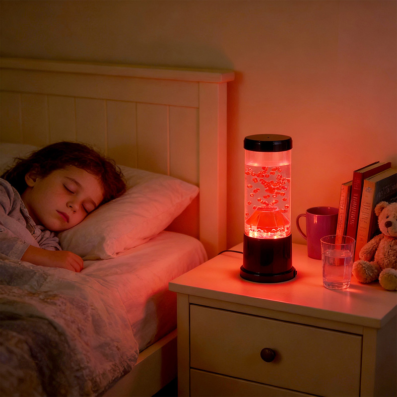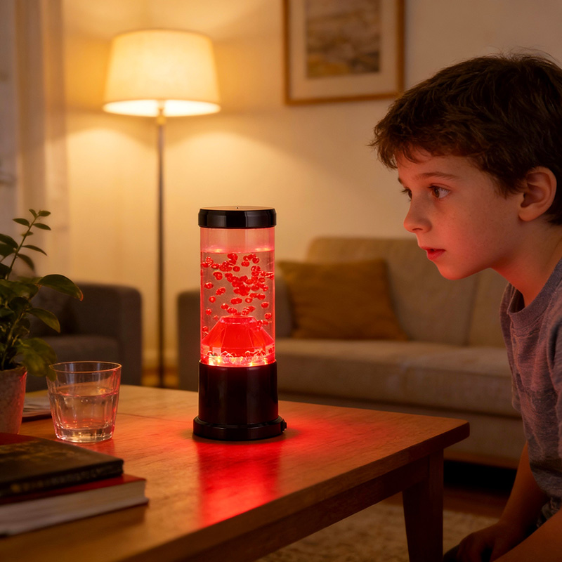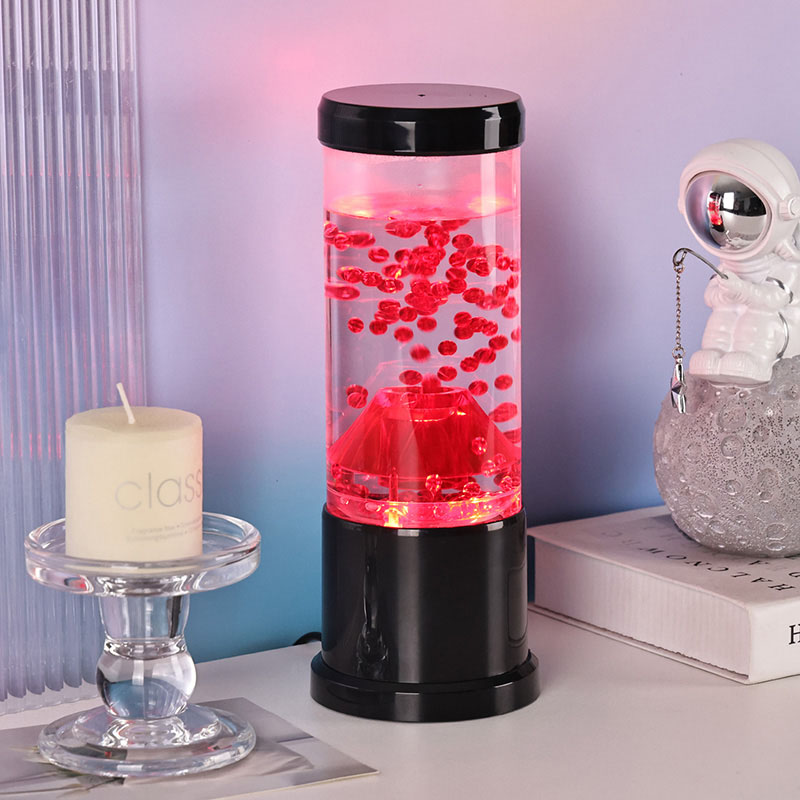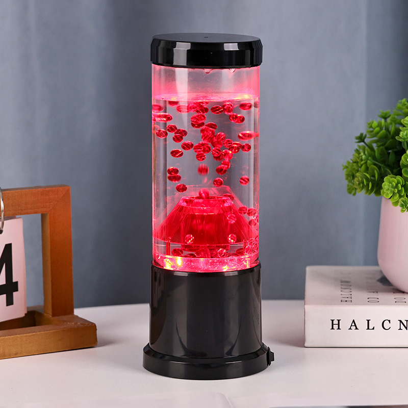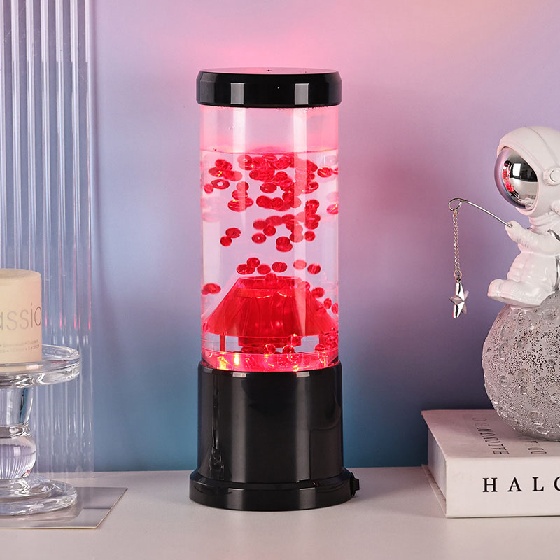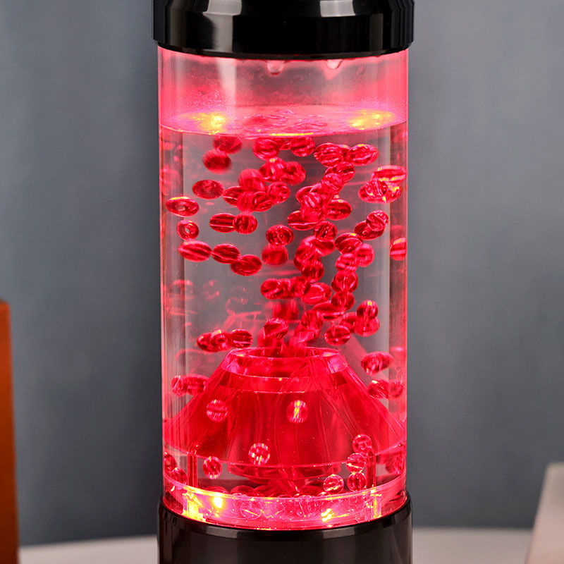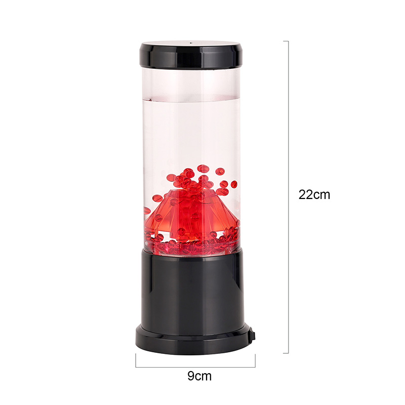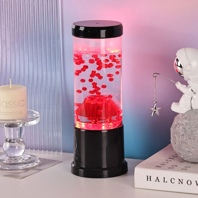 Piesa centrală a luminii de noapte este o coloană transparentă care seamănă cu un crater vulcanic. În interiorul acestei coloane, veți găsi o afișare vibrantă de sfere roșii, care amintesc de lava topită care curge în interiorul scoarței terestre. Aceste sfere plutesc cu grație într-un lichid limpede, creând un efect vizual dinamic și în continuă schimbare. Pe măsură ce lumina strălucește, ea aruncă o strălucire caldă și primitoare, perfectă pentru a crea o atmosferă confortabilă în orice cameră.