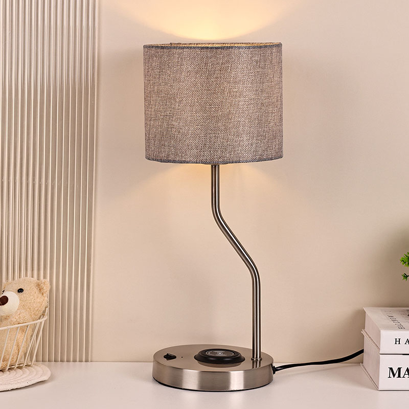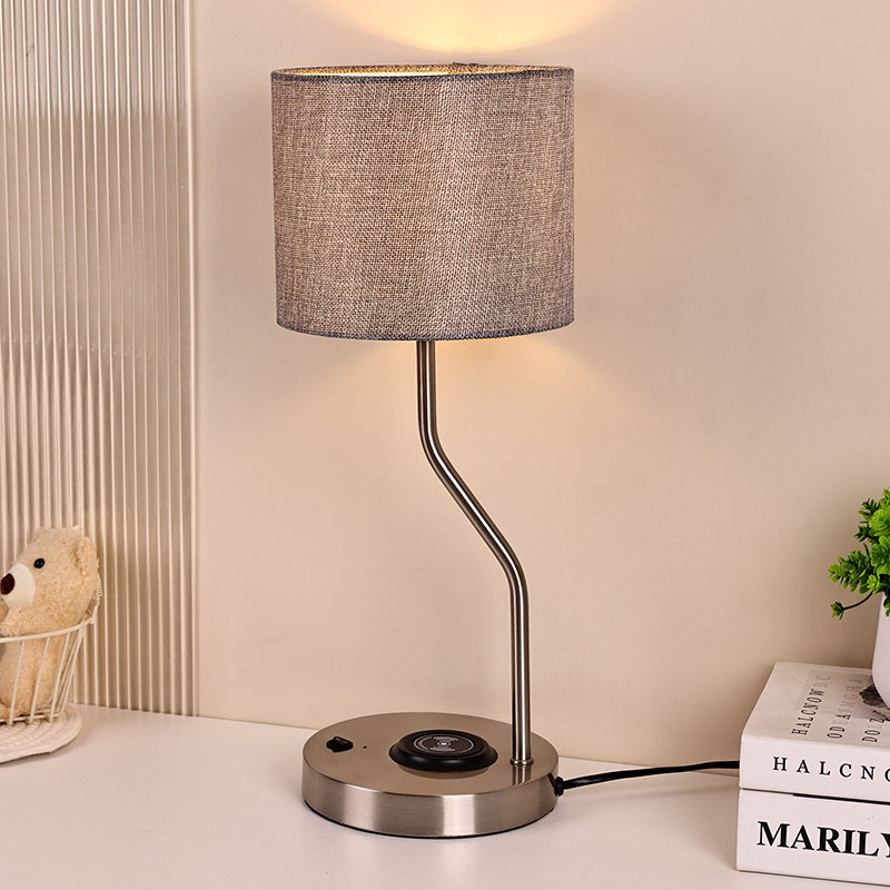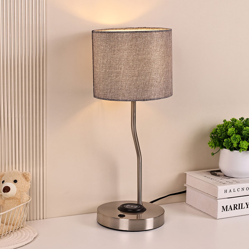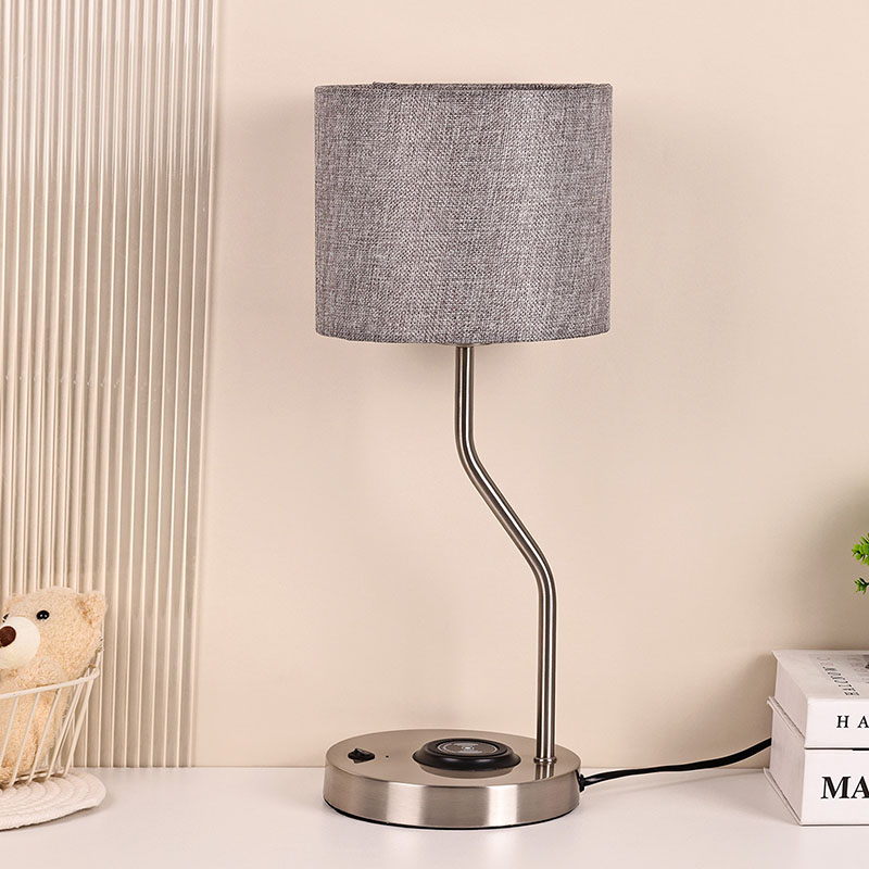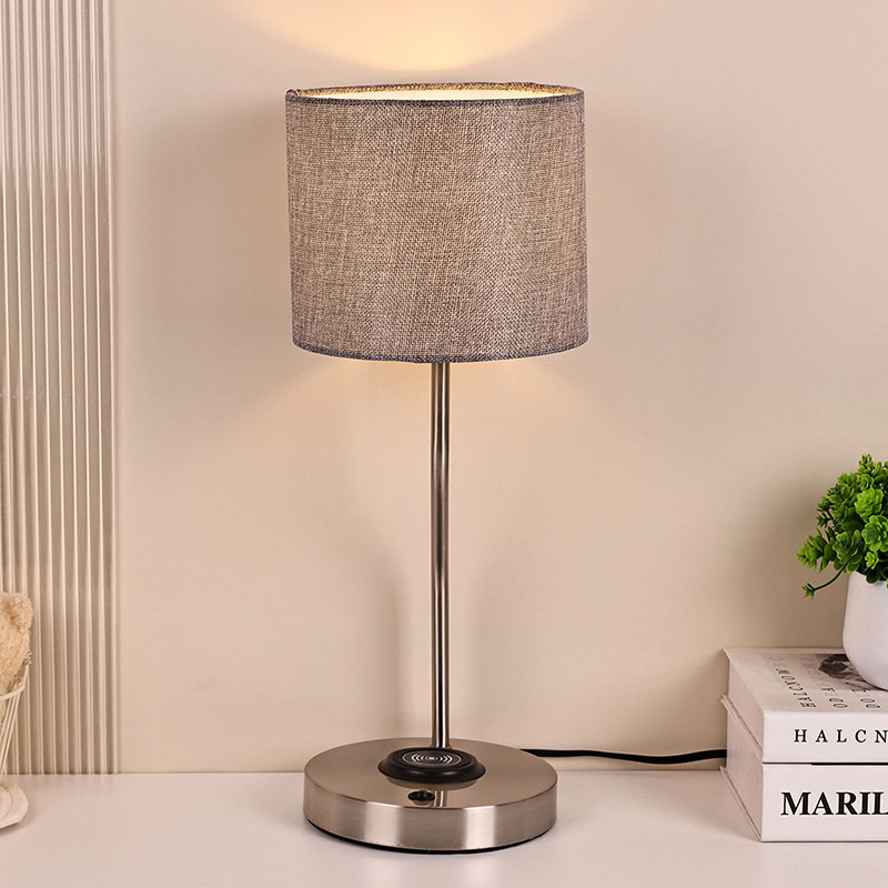 lampă de birou încărcător telefon fără fir cu abajur din material realizat cu abajur din material tradițional